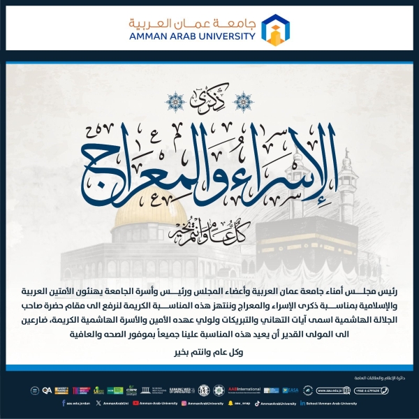 • جامعة عمّان العربية تهنئ الأمتين العربية والإسلامية بذكرى الإسراء والمعراج
