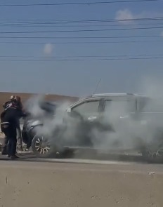 • الدوريات الخارجية تخمد حريق مركبة على طريق الممر التنموي باتجاه عمّان