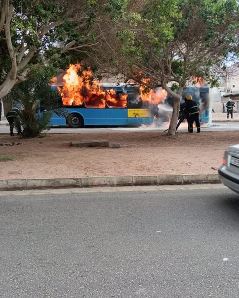 • الدفاع المدني يسيطر على حريق حافلة في منطقة المنارة بالعقبة