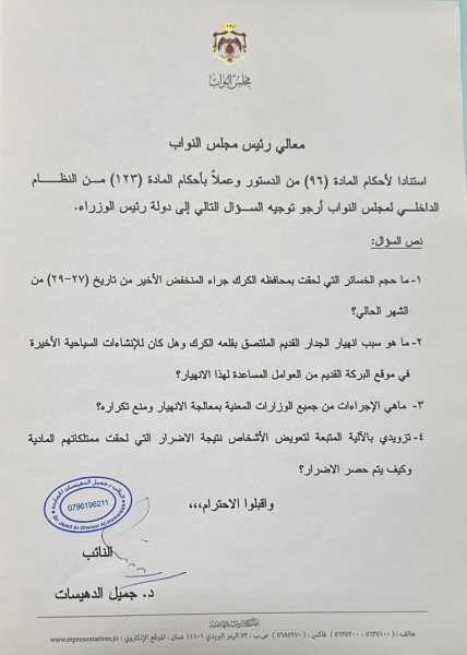 رئيس مجلس النواب بالإنابة: عيد ميلاد الملك مناسبة وطنية لتعزيز الولاء والوفاء للراية الأردنية