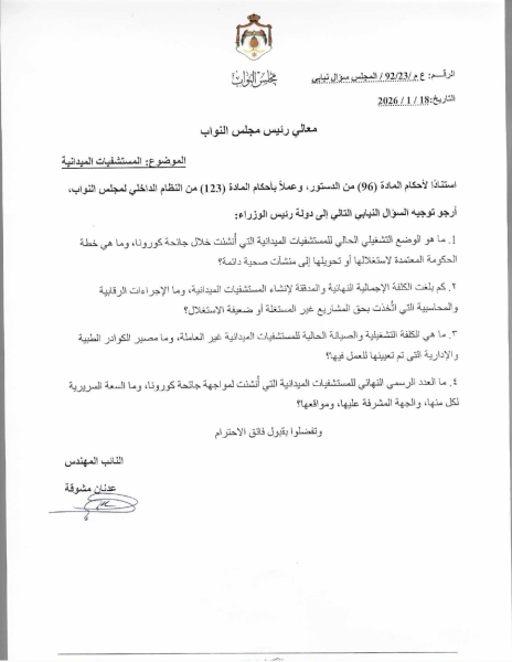 • النائب القوابعة: التوجيهات الملكية بهيكلة الجيش خطوة استراتيجية تعزز جاهزيته وتحمي أمن الأردن