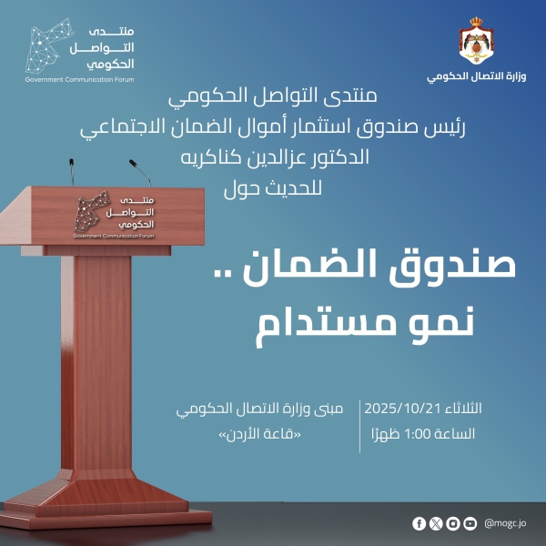 • منتدى التواصل الحكومي يستضيف رئيس صندوق استثمار أموال الضمان الاجتماعي غدا