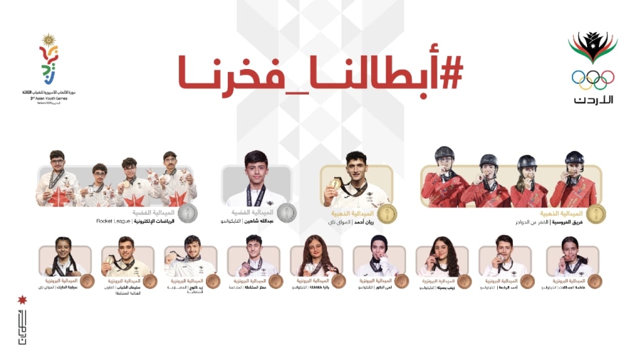 • الأردن يُنهي مشاركته في دورة الألعاب الآسيوية للشباب في البحرين بحصده 13 ميدالية ملونة